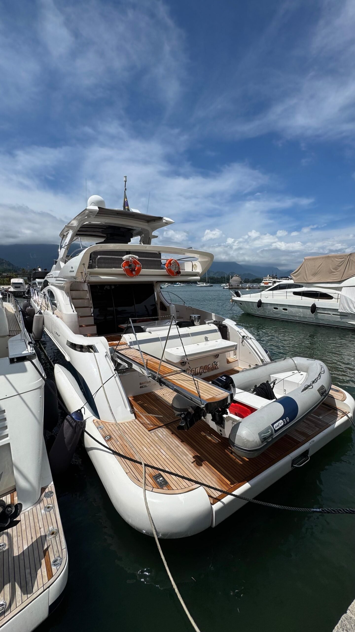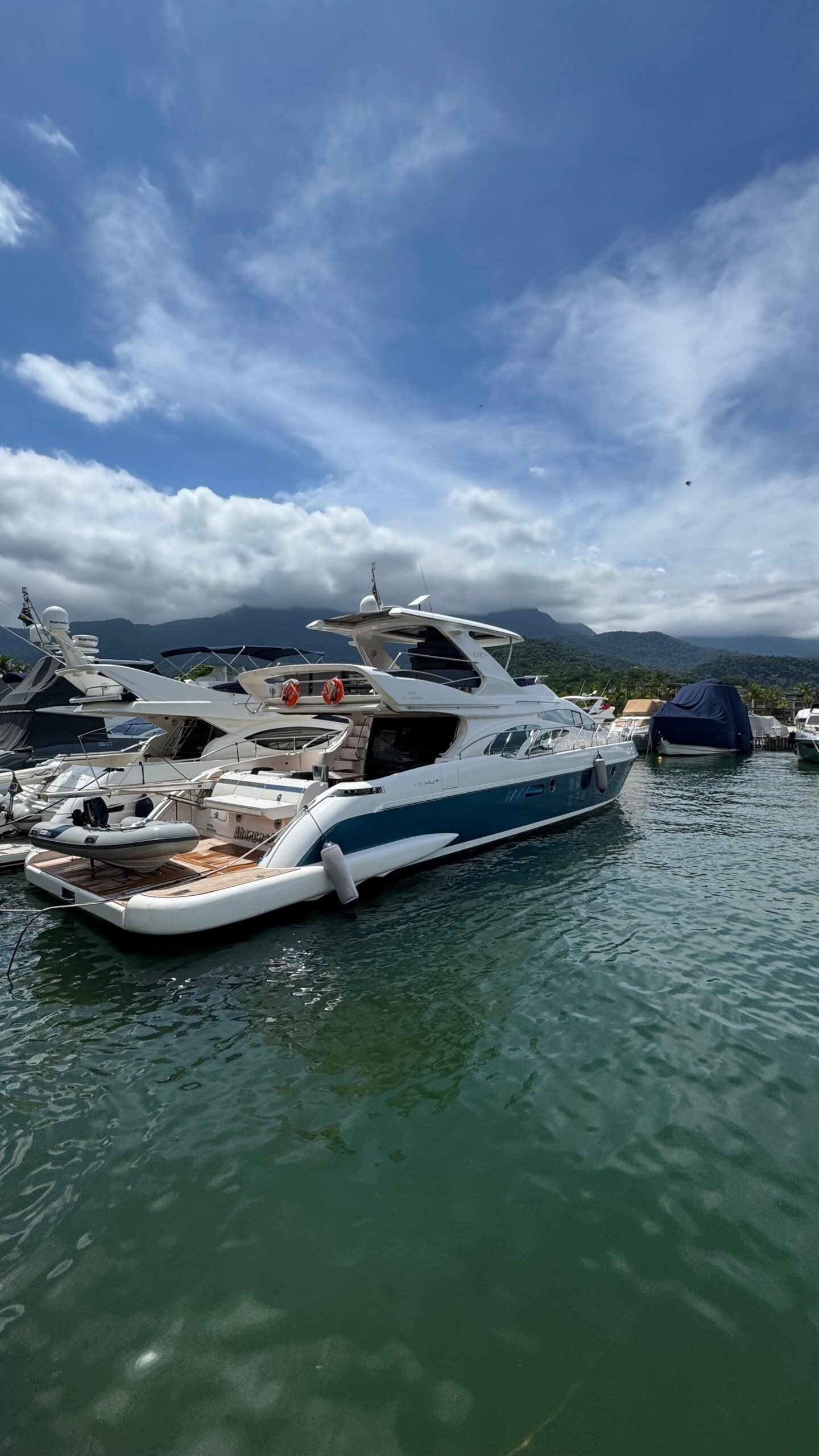 Iate de luxo de 68 pés, um dos modelos mais consagrados da parceria Intermarine–Azimut no Brasil. Combina desempenho forte, navegação confortável e excelente espaço interno.